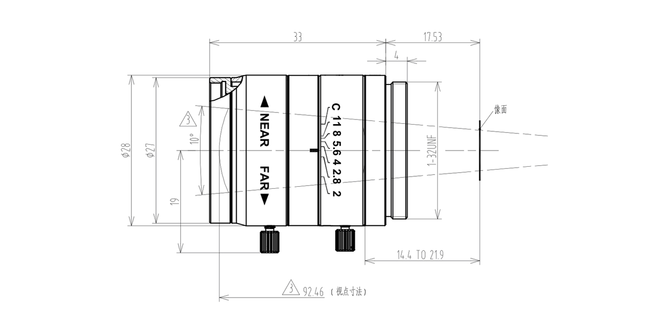 | 1/3" FOV Angle | 7.9°×5.9° | Size | φ28×33 |